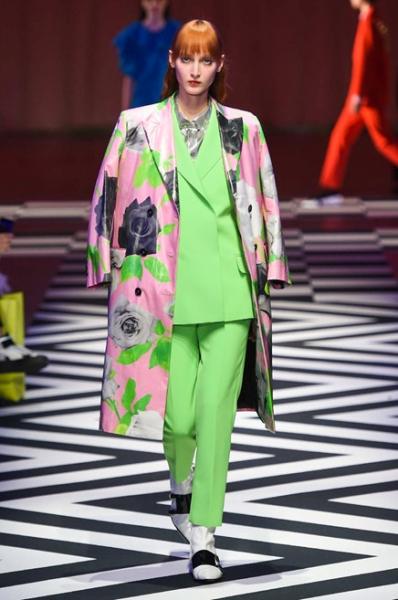 Segni Particolari: Spazia tra atmosfere surreali, ricchissime di contrasti policromi e immagini ossessive di aquile con reminiscenze chevron miste ad ambienti da college, la collezione MSGM, straordinariamente accattivante e colma di spunti originali. Su tutto sempre la voglia di stupire senza mancare di salvaguardare la femminilità. In passerella sfilano abiti longuette con stampe geometriche a diagonali e floreali o a scacchi bianchi e neri, giubbotti e giacconi da college, maglioni con stampe evocanti motivi forestali, gonne longuette, completi pantaloni e abiti dalla pura linea classica spesso con romantici volant. Originali le pellicce che ricalcano i canoni dello stile adottato con varianti e cromie disparate.