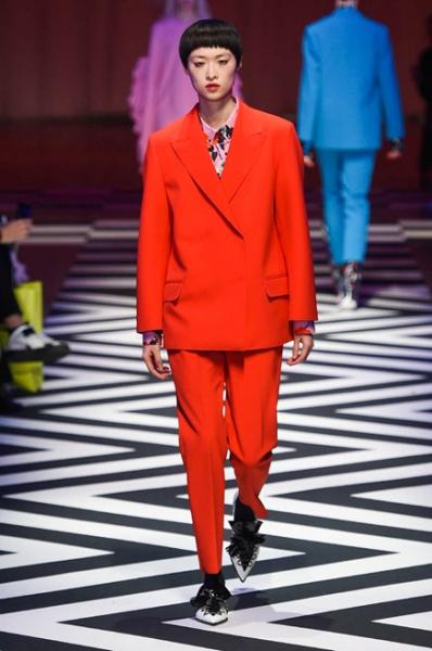Segni Particolari: Spazia tra atmosfere surreali, ricchissime di contrasti policromi e immagini ossessive di aquile con reminiscenze chevron miste ad ambienti da college, la collezione MSGM, straordinariamente accattivante e colma di spunti originali. Su tutto sempre la voglia di stupire senza mancare di salvaguardare la femminilità. In passerella sfilano abiti longuette con stampe geometriche a diagonali e floreali o a scacchi bianchi e neri, giubbotti e giacconi da college, maglioni con stampe evocanti motivi forestali, gonne longuette, completi pantaloni e abiti dalla pura linea classica spesso con romantici volant. Originali le pellicce che ricalcano i canoni dello stile adottato con varianti e cromie disparate.