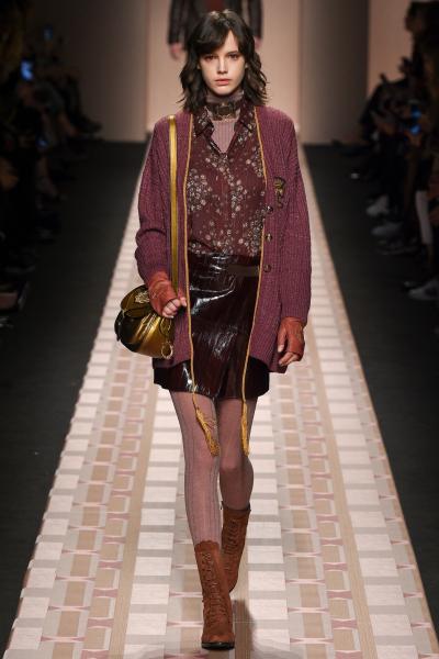 Segni Particolari: Una collezione elegante e veloce come un levriero. Trussardi celebra il savoir faire e l’artigianalità che da sempre lo contraddistinguono e che si rivela nei tailleur in morbida pelle, nelle gonne a pieghe con preziosi dettagli in anguilla e negli accessori con stemmi araldici. Tailleur maschili, gonne a pieghe da indossare con mini pull e giacche dal sapore college. Infine, lunghi cardigan che rivelano mini ridottissime.