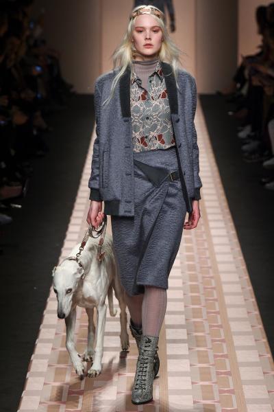 Segni Particolari: Una collezione elegante e veloce come un levriero. Trussardi celebra il savoir faire e l’artigianalità che da sempre lo contraddistinguono e che si rivela nei tailleur in morbida pelle, nelle gonne a pieghe con preziosi dettagli in anguilla e negli accessori con stemmi araldici. Tailleur maschili, gonne a pieghe da indossare con mini pull e giacche dal sapore college. Infine, lunghi cardigan che rivelano mini ridottissime.