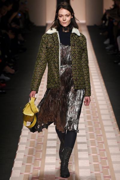 Segni Particolari: Una collezione elegante e veloce come un levriero. Trussardi celebra il savoir faire e l’artigianalità che da sempre lo contraddistinguono e che si rivela nei tailleur in morbida pelle, nelle gonne a pieghe con preziosi dettagli in anguilla e negli accessori con stemmi araldici. Tailleur maschili, gonne a pieghe da indossare con mini pull e giacche dal sapore college. Infine, lunghi cardigan che rivelano mini ridottissime.