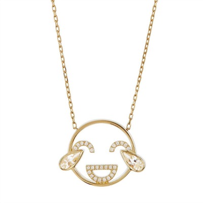 Ruifier propone la collana pendente “Lol”, simbolo di comicità e risate: oro giallo 18 kt, diamante bianco, lacrime in topazio giallo, chiusura con gancio.