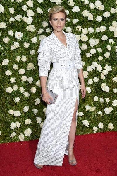 Bellissima Olivia Wilde, che recentemente ha fatto il suo debutto a Broadway in ‘1984’, in rosso con un abito Michael Kors Collection brillante, con profondo spacco frontale e gioielli Tiffany & Co.. Michael Kors Collection veste anche Scarlett Johansson, qui in un completo a righe con maxi gonna e spacco laterale, blazer con maniche over e cintura in vita. L’attrice ha completato il look con gioielli Fred Leighton. Fiori per Anna Kendrick, che ha indossato un long dress Miu Miu nero con decorazioni in bianco, abbinate allo sfondo fiorito del red carpet, e fiocco rosso sul decollete.