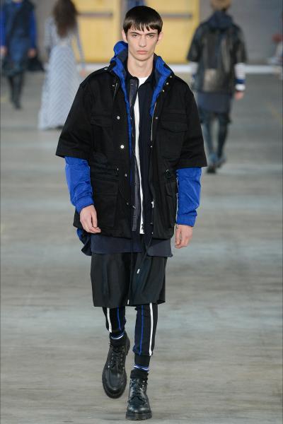 Segni Particolari: Il grunge degli anni Novanta, incontra gli skater e nasce una collezione dal sapore sport-tech. “Volevo una passerella come una vera e propria strada, ampia e lunga, in cui le persone si mescolano i propri codici”, ha detto Andreas Melbostad. Per la donna, abiti floreali, lunghi, maglieria a righe, gonne top-layer che volare dietro di loro come lunghi e leggeri strascichi. Camicie rubate dal guardaroba maschile e quadri, abbinate con pantaloni cargo over. Per l’uomo, lunghe camicie a scacchi, pantaloncini indossati su leggings bordati con strisce di tessuto colorato e infine, parka nero oversize. I classici capispalla, aggiornati in chiave moderna, sono stati il ​​punto di forza, giacche di pelle da motociclista, camicie di pelle nera, cappotti senza colletto e blouson neri voluminosi con fianchi elasticizzati e sportivi.