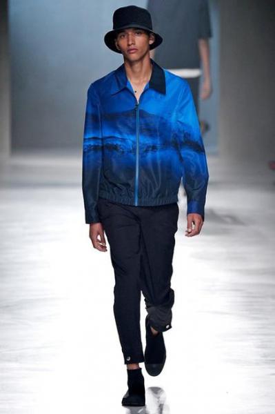 Segni Particolari: Austerità e disciplina regnano nell’universo di Neil Barrett per la nuova collezione in cui sfila anche la donna. Linee minimaliste per lui con trench al ginocchio, giubbotti dal taglio sportivo ed abiti a giacca, così come per lei che indossa outfit dagli orli e scolli asimmetrici, come abiti aderenti, giacche e camicie. Il riferimento è chiaramente anni Novanta, con ispirazione anche all’arte di Donald Judd. L’essenzialità diventa una componente fondamentale della collezione, da riscontrarsi nelle uniformi militari dai capispalla morbidi e destrutturati che si accompagnano ai pantaloni a cavallo basso e stretti.