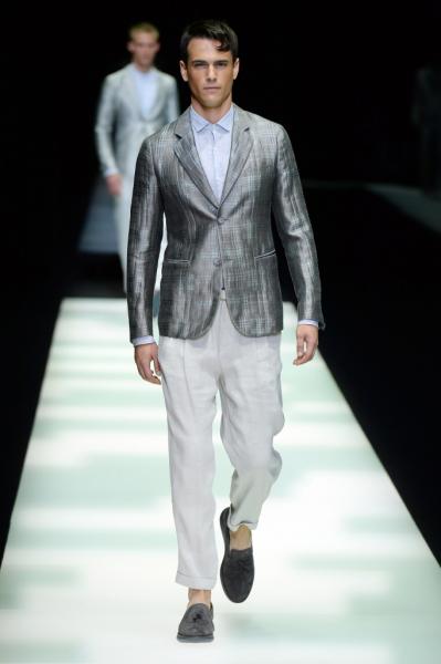 Segni Particolari: Una palette colori che comprende cinquanta sfumature di grigio chiaro. Nessuna scenografia artificiosa, solo una line bianca ad illuminare il centro della passerella. Giacche su misura dal taglio sartoriale, sagome che si ispirano all’Estremo Oriente e camicie avvolgenti stile pigiama. Nelle giacche dal taglio squadrato, colli a scialle o revers a punta stretta. Infine maglioni leggeri abbinati con pantaloni slim dal taglio classico. Tra i tessuti: jacquard e sete ultra leggere.