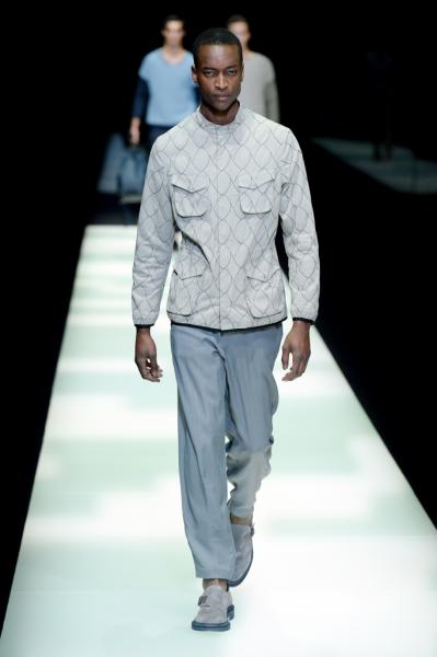 Segni Particolari: Una palette colori che comprende cinquanta sfumature di grigio chiaro. Nessuna scenografia artificiosa, solo una line bianca ad illuminare il centro della passerella. Giacche su misura dal taglio sartoriale, sagome che si ispirano all’Estremo Oriente e camicie avvolgenti stile pigiama. Nelle giacche dal taglio squadrato, colli a scialle o revers a punta stretta. Infine maglioni leggeri abbinati con pantaloni slim dal taglio classico. Tra i tessuti: jacquard e sete ultra leggere.