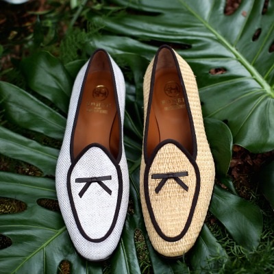 Edhèn conferma la propria identità classical-cool. Ci porta in un universo armonico, scandito dalla forza del colore, dalla materia e dalla purezza delle forme. La base fondante del classico resta, pur se contaminata da alchimie capaci di sradicare vecchi schemi mentali, offrendo una nuova visione della calzatura maschile. Il sapore crudo della rafia scalza la vernice fornendo un nuovo lessico alla Operà Pump, elegante calzatura da smoking. Intrecci ruvidi color ecru compongono la sagoma allungata del sabot di Brummeliana, ispirazione che evoca le passeggiate sul litorale di Antibes.