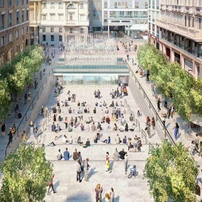 Lo store milanese sarà completamente sottoterra, come quello sulla 5th Avenue a New York, e l’ingresso sarà costituito da una scalinata-anfiteatro che andrà a coprire quasi tutta la piazza e che scenderà verso una cascata d’acqua, sormontata da una grande fontana a livello strada.