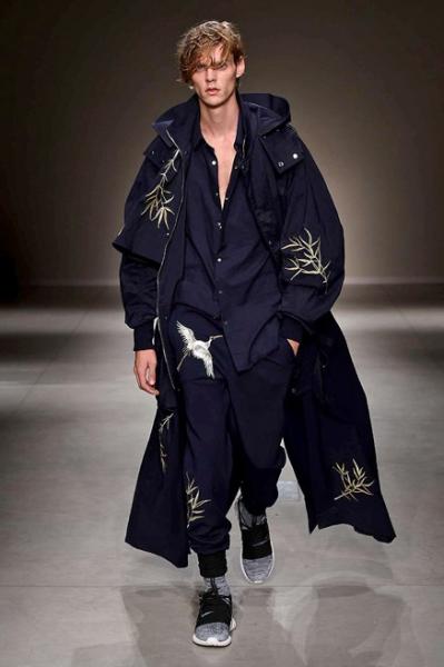Segni Particolari: la giovane stilista Angel Chen presenta la collezione primavera estate 2018 ispirata alle parole del poeta britannico Siegfried Sassoon. Uno stile metropolitano dato da volumi esagerati dai colori vivaci come il giallo, il rosso e il rosa, in netto contrasto con i toni più scuri del blu e nero. Tute destrutturate, maxi giacche e coat glitter effecft. Non mancano in passerella i capi realizzati in collaborazione con il brand taiwanese Abcense e le calzature tubular firmate Adidas Originals.