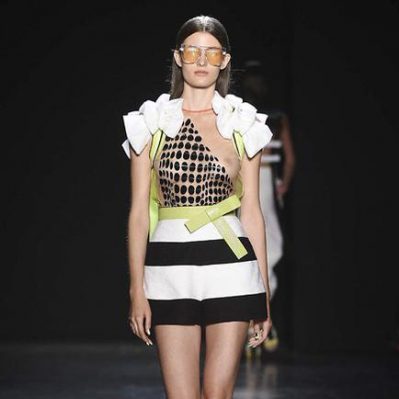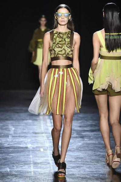 Segni Particolari: il designer Manuel Facchini porta in passerella per Byblos Milano una donna eclettica e moderna. Un perfetto mix tra lo stile di Uma Thurman in Kill Bill e quello alla Sayuri-Zhang Ziyi del film “Memorie di una geisha”. Motivi optical dal sapore anni ’60 su abiti leggeri e colorati caratterizzati da profonde scollature e trasparenze. Motivi geometrici dai colori accesi sono applicati su abiti, gonne e top per una collezione spaziale. Non mancano fantasie optical e cinture strette in vita.