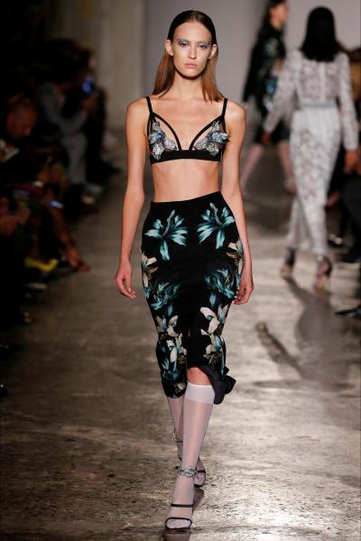 Segni Particolari: una donna dallo spirito delicato e inquieto è quella portata in passerella da Francesco Scognamiglio, una donna libera, ed eclettica.  Mini abiti rosa con ruche décor, ma anche felpe e T-shirt over con stampe dai colori accessi. Coat piumati e maxi bomber lamé. Una donna che ama il mix and match, i contrasti forti e i colori. Allo stesso tempo una donna sexy che indossa abiti in stile Eighties e dress di pizzo trasparenti.