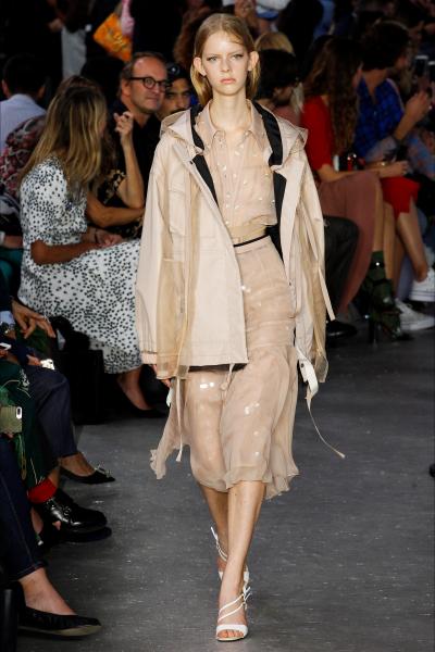 Segni Particolari: una donna reale raccontata da Dell’Acqua attraverso ventuno sfumature di nudo, dal carne al rosa, per raccontare una collezione in cui i capi iconici come la lingerie a vista e lo slipdress in chiffon e rivivono tra sovrapposizioni, contrasti e combinazioni. Ecco allora sfilare sulla passerella, parka tecnici incapsulati nel tulle, gonne a pieghe spalmate di paillettes, sottovesti in pizzo, brevi maglie di mohair e longuette tempestate di maxi cristalli.