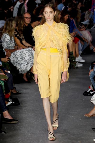 Must Have: camicia gialla trasparente con inserti di piume.