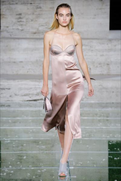 Quando si parla di Ferragamo pensiamo immediatamente alle sue scarpe, per questo l’aspettativa cresce durante il fashion show. Cerchiamo lo stile giusto per queste calzature “giuste”. Se la passata primavera/estate ci aveva ammaliati, non possiamo dire lo stesso della prossima. La collezione appare scollegata, senza tratti distintivi o “effetto wow”. Un po’ noiosa a tratti. A compensare, i tagli sartoriali impeccabili, soprattutto negli abiti da sera con spacco e spaghetti strap. Gli abiti sottana, illuminati dalla seta, sono un po’ scialbi… we want some more! Le gonne, forse un po’ vecchie e l’animalier ostentato delle prime uscite proprio non lo vogliamo vedere, o quantomeno, non da Ferragamo! Cosa ci è piaciuto? Il latex nei capispalla è azzeccatissimo. Ringiovanisce un outfit classico con una sferzata di colore. La jumpsuit blu bondi ci ha fatti innamorare; ed un completo super minimal in giacca e pantalone dalle linee comode, quel che si dice “Less is More”, è espressione dell’alta qualità che da sempre contraddistingue questo storico marchio italiano.