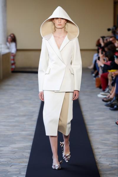 Segni Particolari: sogni e movimenti in nuove sintonie da indossare. Stoffa, spille, onde e spirali, compongono la nuova collezione di Mila Schön. Le righe dientano rebus, le grafiche sono diagrammi, il senso della modernità ha una nuova grammatica. Tessuti moderni elaborati come nella haute couture, jaquard e sete, canvas e cotone. Tailleur con cappuccio in tessuto double, gonne a portafoglio. L’outfit ideale per una moderna Kim Novak. Infine, abiti che strizzano il punto vita e si aprono alle caviglie.