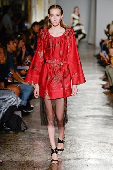 Segni Particolari: Albino Teodoro porta in passerella una collezione moderna e contemporanea dai tagli e le geometrie asimmetriche. Lunghi gilet, trench decorati con scintillanti paillettes dorate, la classica camicia bianca rivisitata con decorazioni e applicazioni, abiti con stampe floreali, dettagli velati che donano un effetto vedo-non-vedo e lunghe gonne colorate dai tagli asimmetrici.