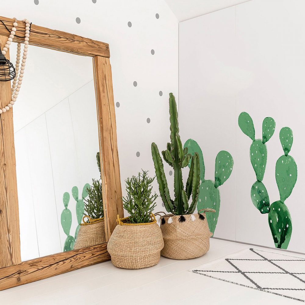 #1 La parete “grassa”. Gli stickers murali di Lovedesign (€ 37) sono perfetti per ravvivare una parete priva di carattere. Abbinali a complementi d’arredo natural, come ceste in rattan e specchi in legno grezzo.