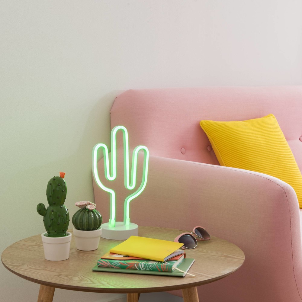 #7 Neon. Fanno molto stile industriale, i neon si spostano dai locali music&drink all’interior design. Questi di maison du monde (€ 16.99) sono a forma di cactus e sono perfetti anche con gli arredi color pastello.