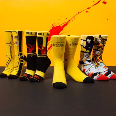 Per celebrare il talento di Quentin, Stance, il noto marchio famoso per realizzare calzini di stile e design, ha deciso di creare una capsule dedicata ai suoi capolavori più noti. Nove i modelli realizzati i cui soggetti si dividono tra i protagonisti di Kill Bill, Pulp Fiction e Le Iene. Mia Wallace, Vincent e Jules sono immortalati nell’intera collezione assieme alle scene che li hanno resi iconici. La palette colori è allegra, vibrante e predilige i toni del giallo e del blu e rosso. Ogni paio di calze è studiato nei minimi particolari, in quanto è realizzato in cotone pettinato con punta e tallone rinforzati per offrire massimo supporto e comfort.