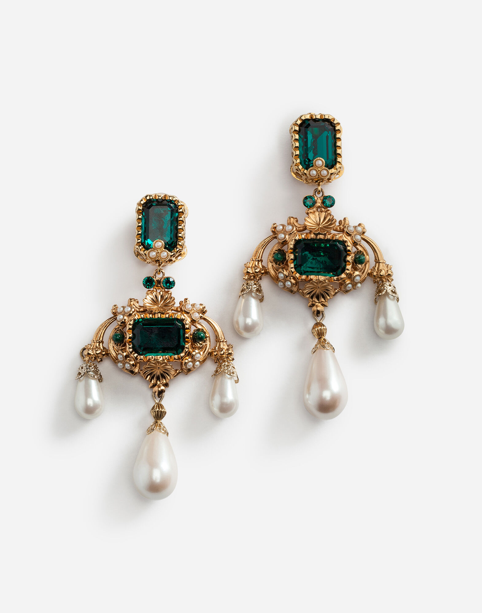 Se, invece, si tratta di orecchini, allora si, voglio strafare! La misura generosa è davvero top al momento e non potrei esserne più felice. Il gusto barocco di Dolce&Gabbana è davvero perfetto per il periodo festivo. In questo paio di orecchini in gold con perle pendenti, il tocco di raffinatezza è dato dai cristalli che rievocano lo smeraldo.
