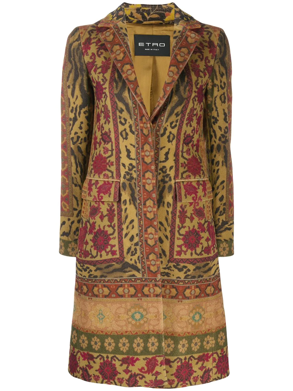 Se il maxi coat nero c’è, quello cammello pure, quello rosso lo abbiamo preso lo scorso Natale, quello tartan idem… è il momento di regalarci un cappotto dalla stampa importante. Un pezzo statement che non passi assolutamente inosservato. Ho un bisogno disperato di Etro. Non è solo un capospalla: è un viaggio in una terra speziata, è il profumo di qualcosa di antico. Racconta una storia. È la tradizione artigianale… è per gente carismatica. Ti dice dalla vetrina: “Tu mi vuoi perché non sei come gli altri”. Ok, ci credo, lo voglio. E poi, non trovo modo migliore per valorizzare un outfit total black!
