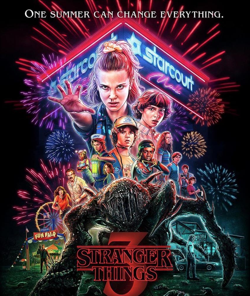 Una serie tv acclamatissima, che ha fatto appassionare milioni di persone, facendo razzia di premi e riconoscimenti. Facciamo un salto temporale fino agli anni ’80, nella cittadina di Hawkins (Indiana) dove un bambino scompare misteriosamente ed appare una bambina rasata con poteri psichici fuggita da un laboratorio segreto. Veniamo catapultati nel Upside Down: il mondo sottosopra, una dimensione parallela dove vivono creature mostruose. Creeeepy!