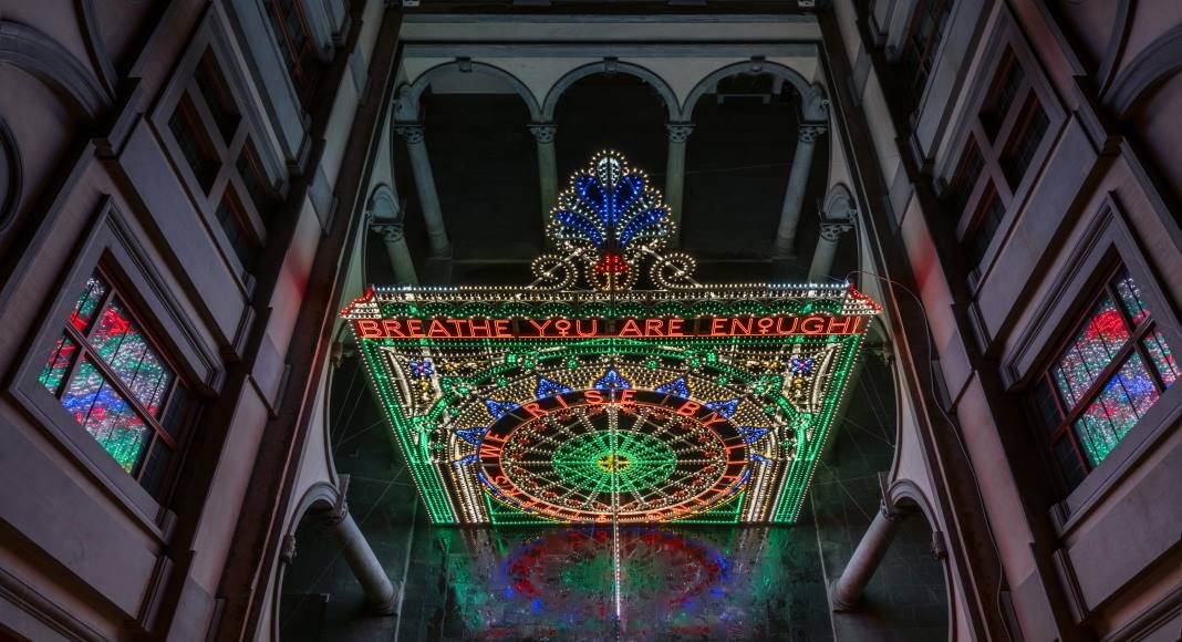 Si intitola We Rise By Lifting Others (Ci eleviamo sollevando gli altri) l’installazione di Marinella Senatore esposta fino al 7 febbraio 2021 all’interno del cortile di Palazzo Strozzi, in Piazza degli Strozzi a Firenze. Visitabile dalle ore 9 alle ore 20, il progetto è a cura di Arturo Galansino, Direttore della Fondazione Palazzo Strozzi.