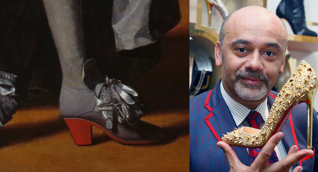 In gran parte dei suoi ritratti ufficiali, Luigi XIV, il Re Sole, indossa scarpe in raso di seta dall’alto tacco e dalla suola in pelle scarlatta.