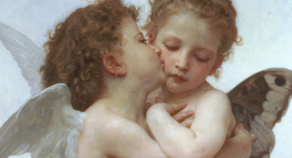 Fino all’iperpubblicizzato, iconizzato e mille volte riprodotto: Il Primo Bacio o Amore e Psiche Bambini del sublimemente virtuoso William-Adolphe Bouguerau, del 1890.