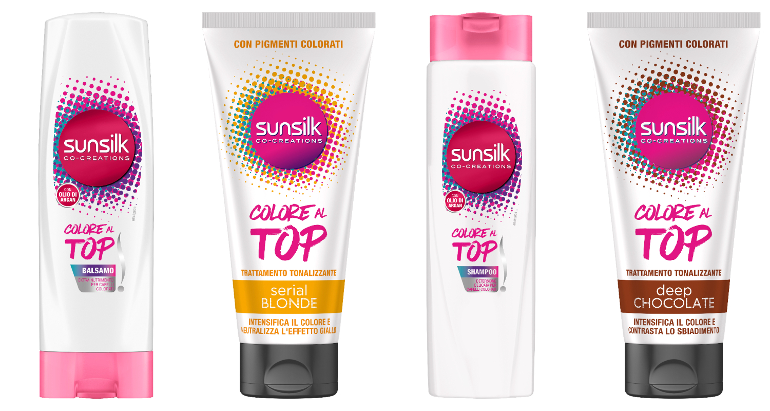 I capelli colorati, necessitano di una cura particolare e questo si sa, ma cosa usare? Tra le New Entry in casa Sunsilk abbiamo la linea Colore al Top, che ravviva e dona brillantezza immediata. Si tratta di una hair care routine in tre step: shampoo e balsamo, ideali per tutte le tipologie di colori, abbinati a due proposte di trattamenti tonalizzanti con pigmenti colorati, biondi e castano scuro.