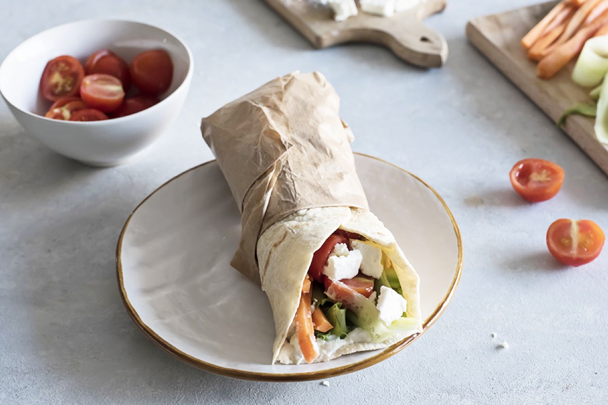 1. Piadina con crema di piselli, zucchine grigliate e feta.