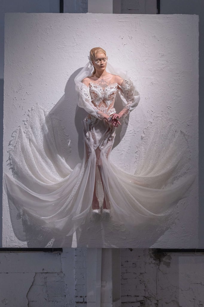 Ed ecco che ha inizio un hybrid show i cui protagonisti sono 5 abiti scultorei modellati direttamente sulla pelle.