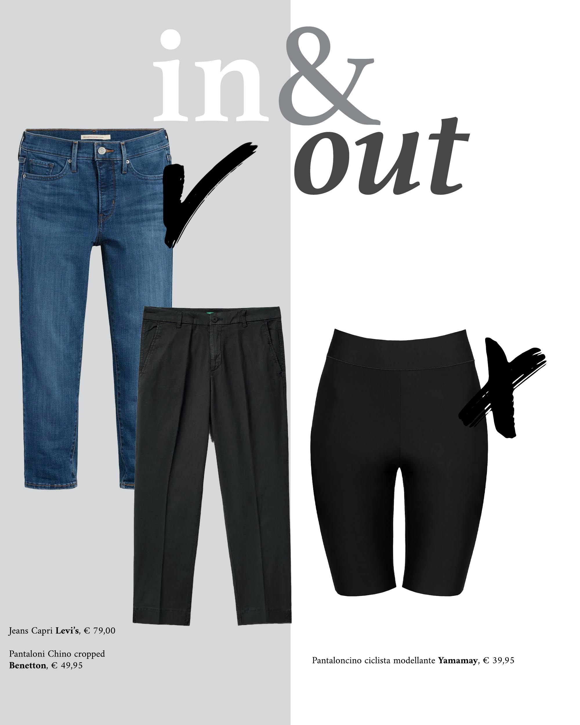 Il trend dei ciclisti ha avuto una vita davvero brevissima. È andato via velocemente, senza che nessuno se ne accorgesse. Abbiamo visto tantissimi outfit con ciclisti, blazer oversize e pumps. Adesso il solo pensiero ci fa accapponare la pelle. Questa tipologia di pantaloncino, ormai da sfoggiare solo in palestra, è stata sostituita dai pantaloni Capri (di ritorno dagli anni 2000), dai Chino cropped e dai bermuda maschili.