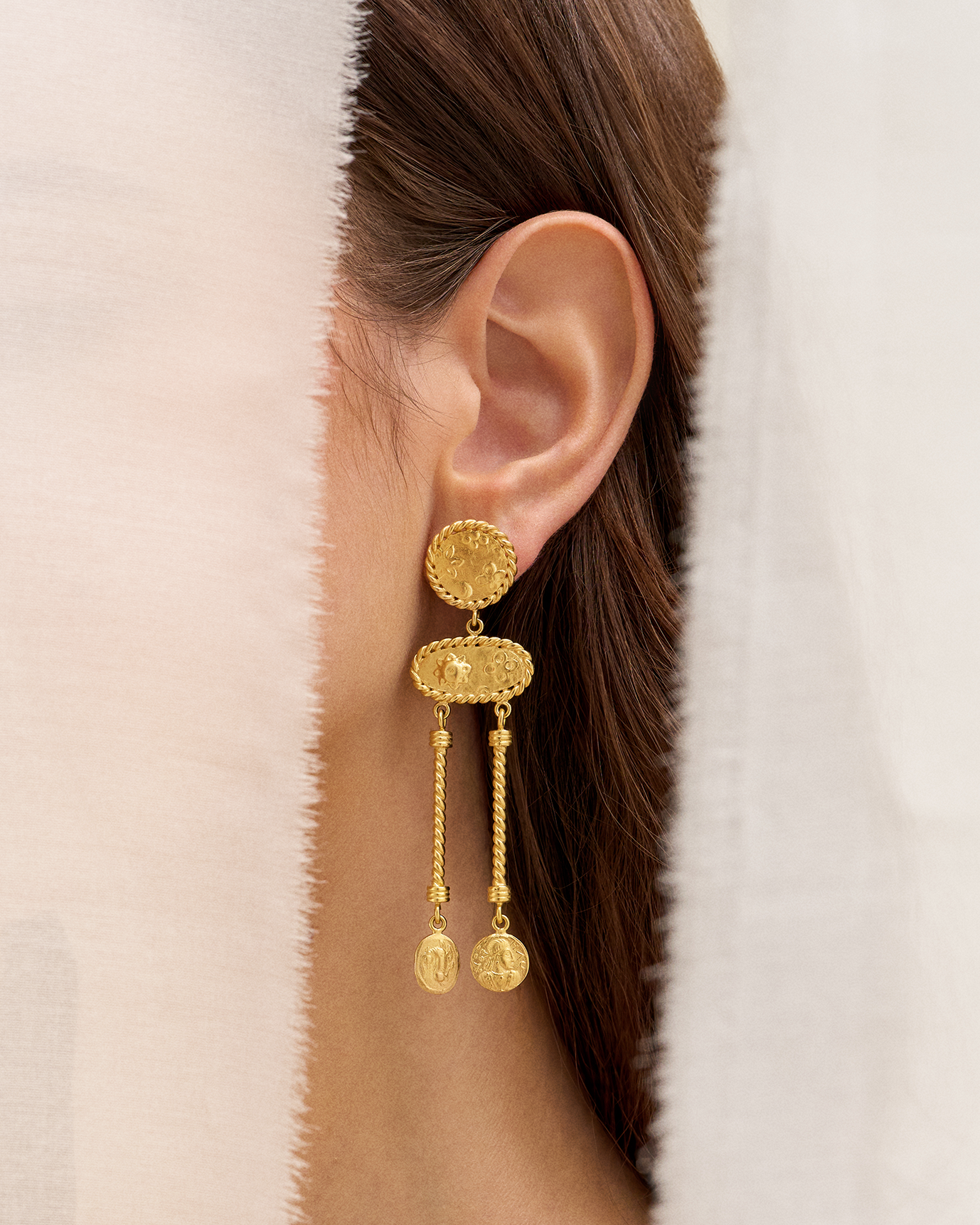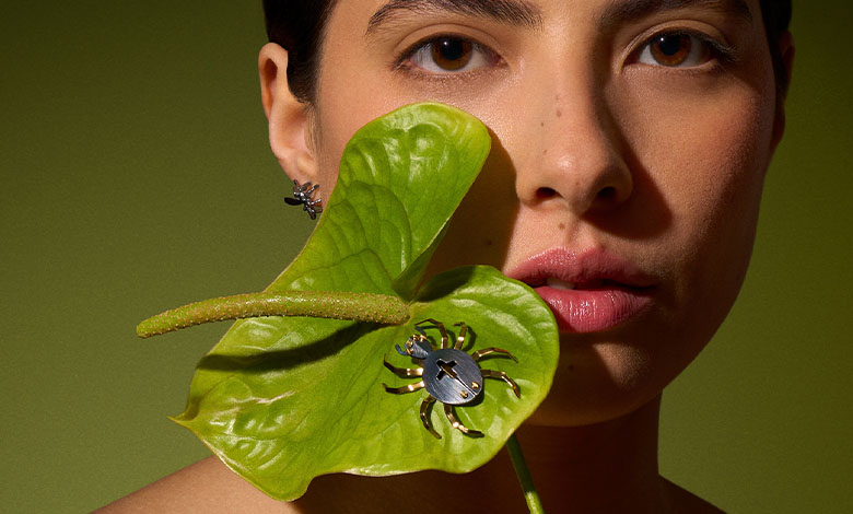 A Roma ha presentato due collezioni emblematiche. “Turmali”, ispirata all’aurora, ha portato in passerella turmaline grezze in tutte le sfumature, provenienti dal Rajasthan. “Semios”, invece, si è concentrata sui simboli: sigilli, monete, medaglioni, figure mitologiche e segni zodiacali che si intrecciano in costellazioni protettive. A rendere ogni pezzo ancora più unico è l’impronta delle linee papillari degli artigiani che lo hanno realizzato, incisa come firma simbolica di un lavoro profondamente umano.