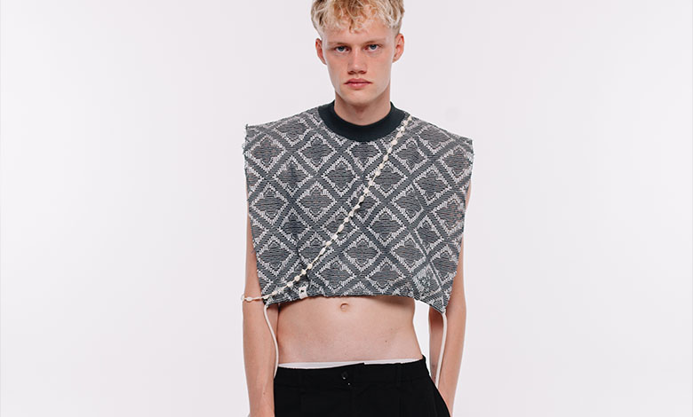 Tra questi ha colpito TSUDA, marchio fondato nel 2020 dalla stilista e grafica Anna Palitava. Il nome deriva dal termine bielorusso “miracolo” e riflette la filosofia della designer: trasformare materiali comuni in oggetti straordinari. Nata in Bielorussia e rinata in Polonia dopo l’emigrazione a Varsavia, Anna ha costruito una collezione che parte dal riciclo di tende e tendaggi, dando vita a pantaloni, top, shopper e gonne grembiule che uniscono semplicità e forza simbolica.