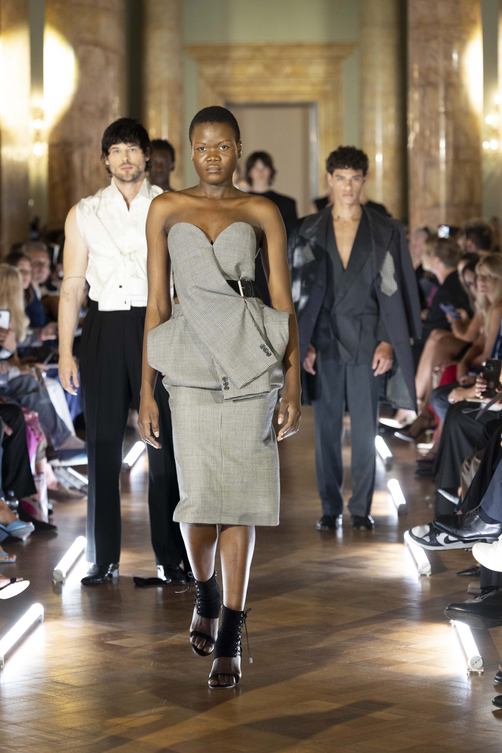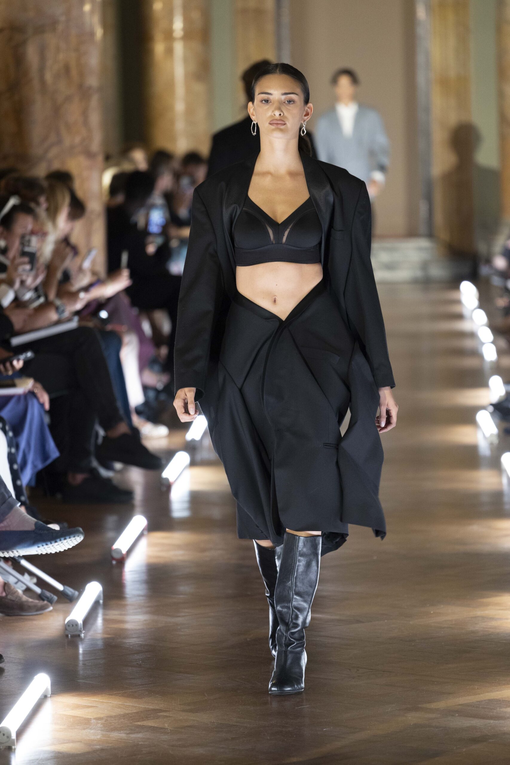 Lo stile di Monika Surowiec è stato una dichiarazione di intenti. Severo e caldo, architettonico e sensibile. Ha lavorato sull’attrito tra ordine e imperfezione. La materia non è stata mai levigata fino a perdere l’anima, è rimasta viva, con i suoi segni. Il nero, che poteva sembrare uniforme, è diventato un campo aperto dove leggere differenze di grana, di peso, di lucentezza. La luce, calibrata, ha creato ritmo. La texture, tessuta e rielaborata, ha raccontato il passaggio del tempo. È stata una moda che non ha chiesto applausi fragorosi, ha chiesto attenzione. A Roma l’ha ottenuta, perché qui il prestigio non si annuncia, si dimostra con la coerenza del progetto e con la qualità dell’esecuzione. Surowiec l’ha portata con naturalezza, e nel contesto di East Bound. Roma ha confermato che la circolarità può essere un linguaggio estetico completo, capace di parlare di futuro senza rinunciare alla memoria.