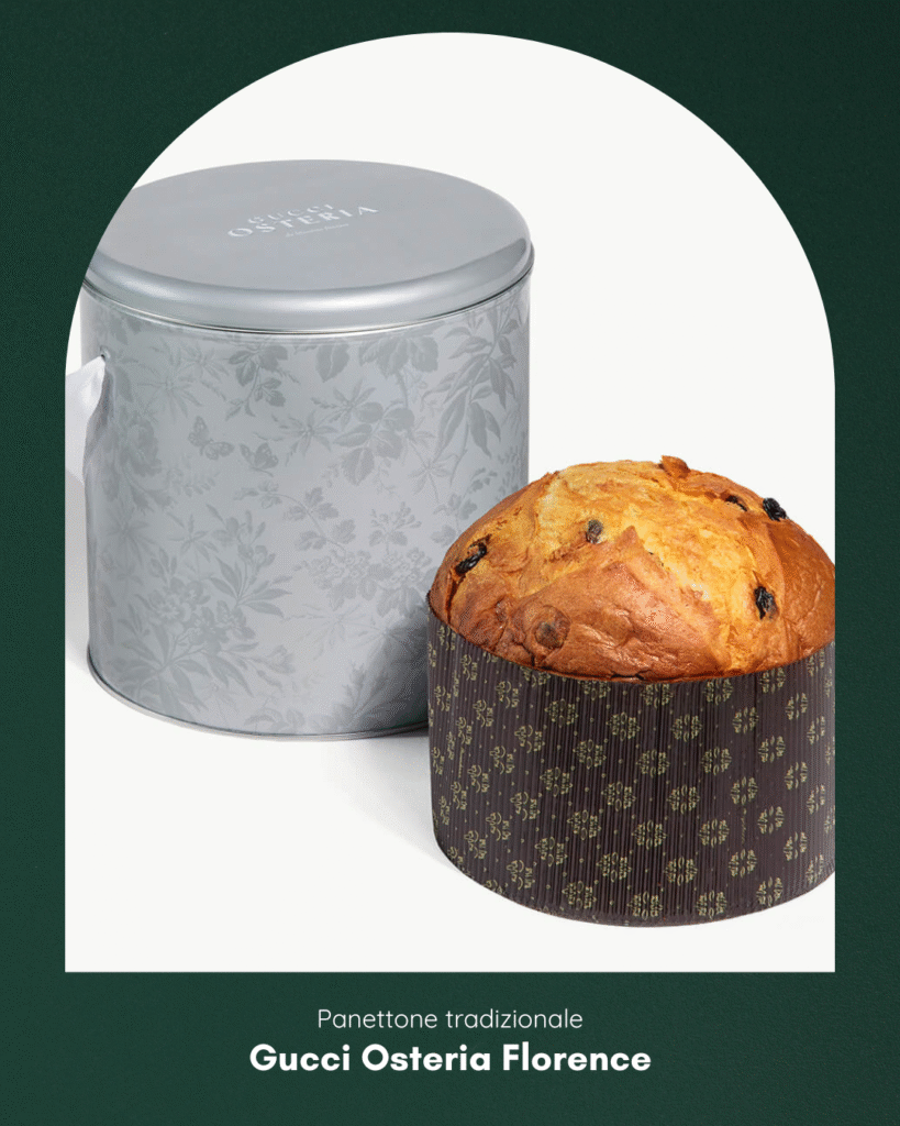 Gucci Osteria Florence, in collaborazione con Tiri, pensa ad un dolce tradizionale e soffice con uvetta, arancia candita e vaniglia del Madagascar. Il tutto custodito in una raffinata scatola di latta con iconico motivo floreale. Diciamolo, non è il packaging più bello sfornato da Gucci, ma chiuderemo un occhio perchè la vera novità di quest’anno è l’introduzione della variante 100% vegetale! L’unico panettone di alta fascia pensato anche per chi ha abbandonato latte e uova. Quindi, grazie (sono vegana e sono di parte!).