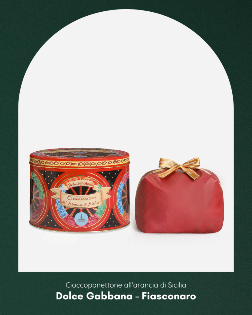 Si rinnova il sodalizio fra Dolce&Gabbana e Fiasconaro, stavolta con l’introduzione del Cioccopanettone all’arancia di Sicilia che si aggiunge alle varianti deliziose con protagonisti i sapori agrumeti e pistacchiosi dell’isola del mediterraneo. Immancabile il packaging da cartolina turistica con tanto di riferimenti a quell’estetica barocca di cui alcuni siciliani (come la sottoscritta) sono un po’ saturi. Ma… alla fine, di essere buono è senz’altro buono!