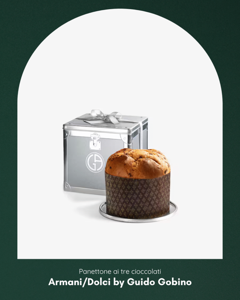 Sarà un’impresa ardua riuscire a trovare il panettone ai tre cioccolati di Armani/Dolci by Guido Gobino. È sold out praticamente ovunque! Cioccolato bianco, gianduia e fondente per un’esperienza sensoriale stellata in un packaging formato Fly case fra i più belli di quest’anno.