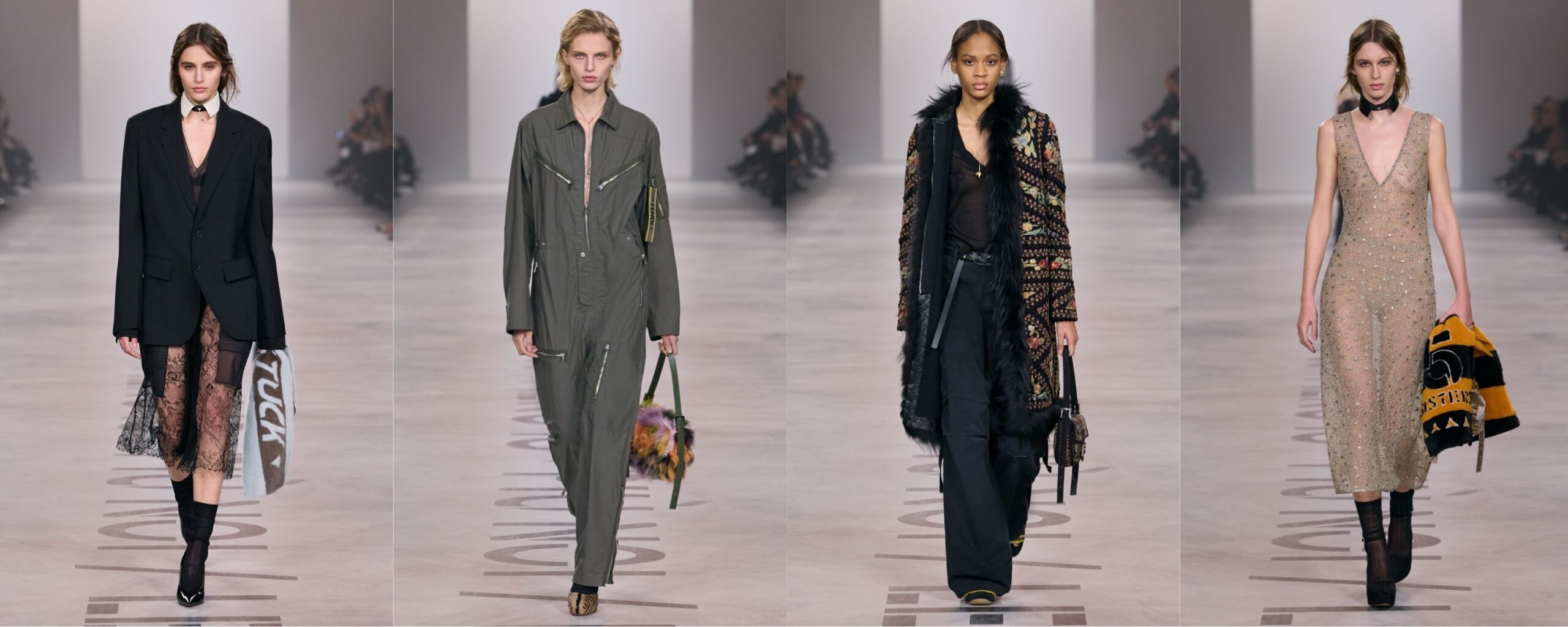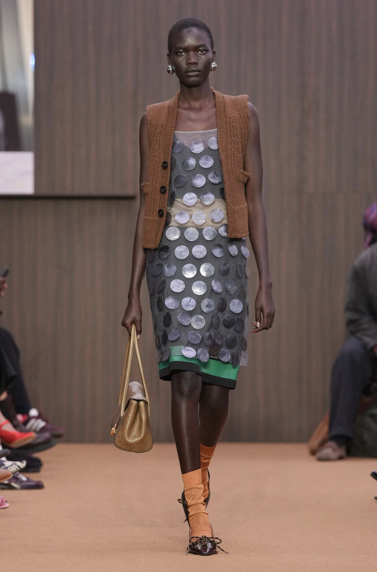 Tanto nero, nessun bisogno di stupire a tutti i costi, e una sensazione diffusa di misura. Maria Grazia Chiuri lavora sul “fare insieme”, su una moda che non urla ma costruisce: completi più sartoriali, volumi contenuti, meno street e più struttura. Le Baguette tornano morbide, quasi vintage. Una collezione che non chiede approvazione immediata, ma attenzione — soprattutto oltre i social. Se volete approfondire, ne parlo più nel dettaglio qui.
